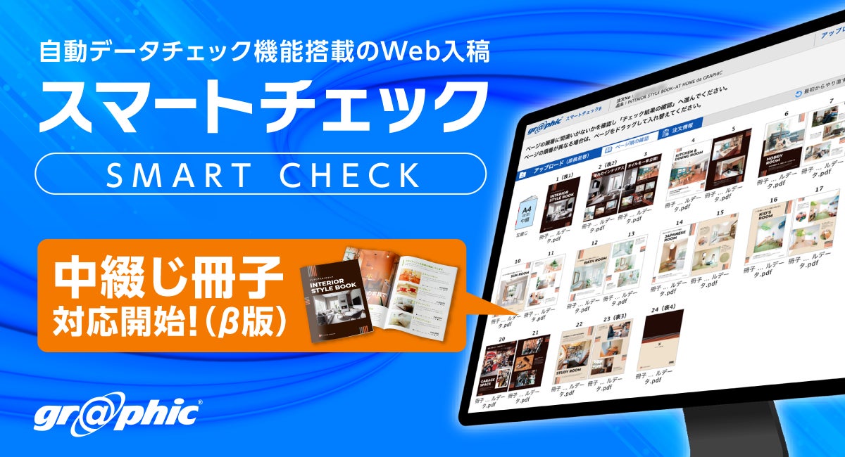 株式会社グラフィック(本社:京都市伏見区、代表取締役社長:西野能央)はネット印刷事業にて、入稿データを自動でチェックし仕上がりイメージを確認できるサービス「スマートチェック」をアップデート。冊子入稿の一部仕様に対応したβ版をリリースいたしました。