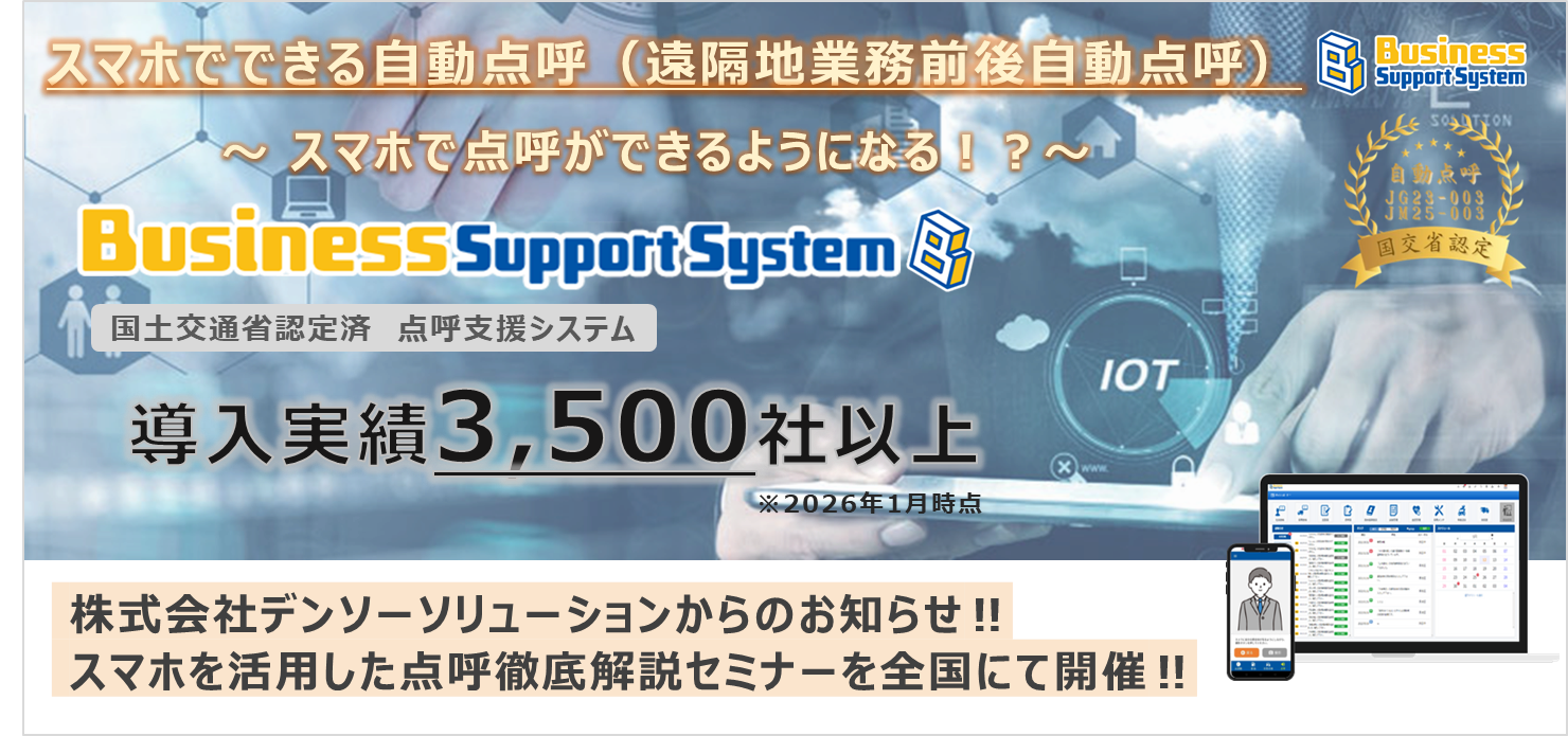 BusinessSupportSystemにてスマホを活用した点呼についての解説セミナーを実施いたします