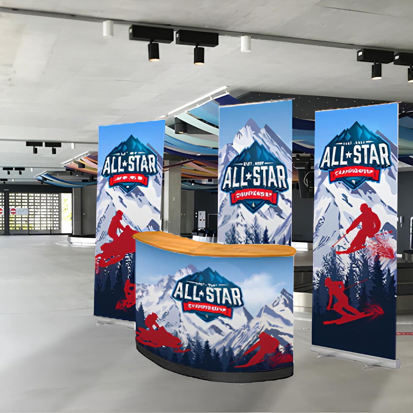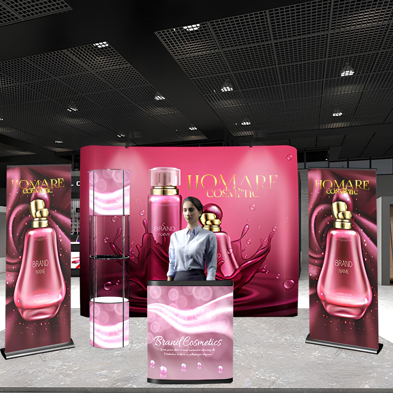 セット購入で10%の割引が適用され、セット内容のカスタマイズも可能です。セット内全体で統一させたデザイン制作も対応しておりますので、ブースのデザインから印刷、設営までトータルサポートを提供させていただけます。