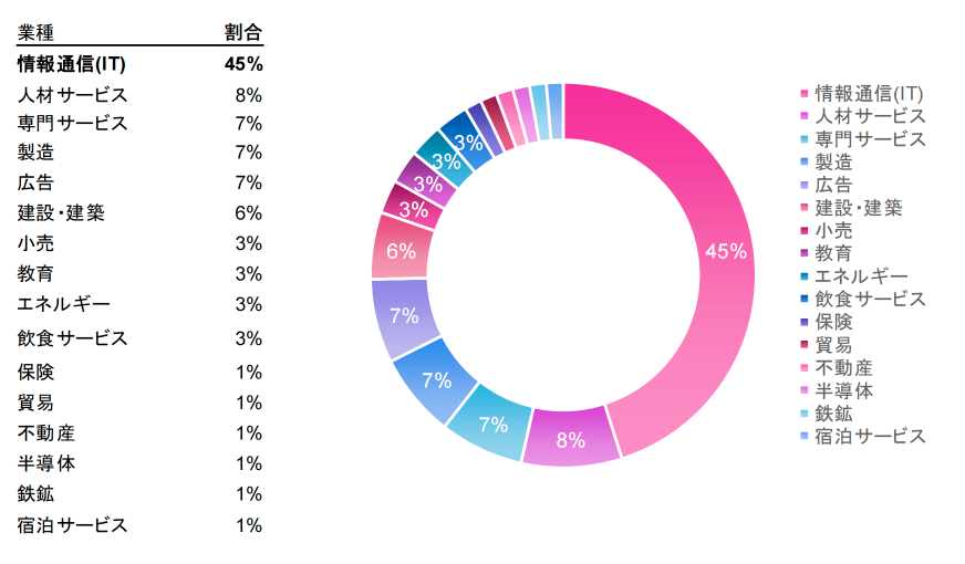 ■ 登録企業:多業種に拡大、サービス業・専門職分野が増加