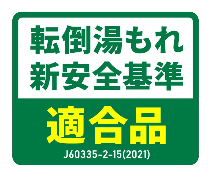 過熱防止機能やチャイルドロック機能を搭載しており、使用中の事故を防ぐ安全設計を実現しました。特に、小さなお子様や高齢者のいる家庭でも安心して使用できます。また、新安全基準をクリアした適合品のため、万が一本体を倒してしまっても、お湯もれを最小限に抑える設計となっています。