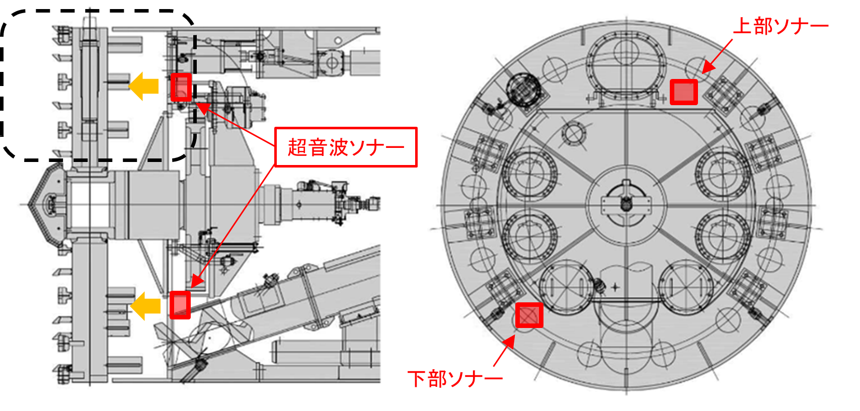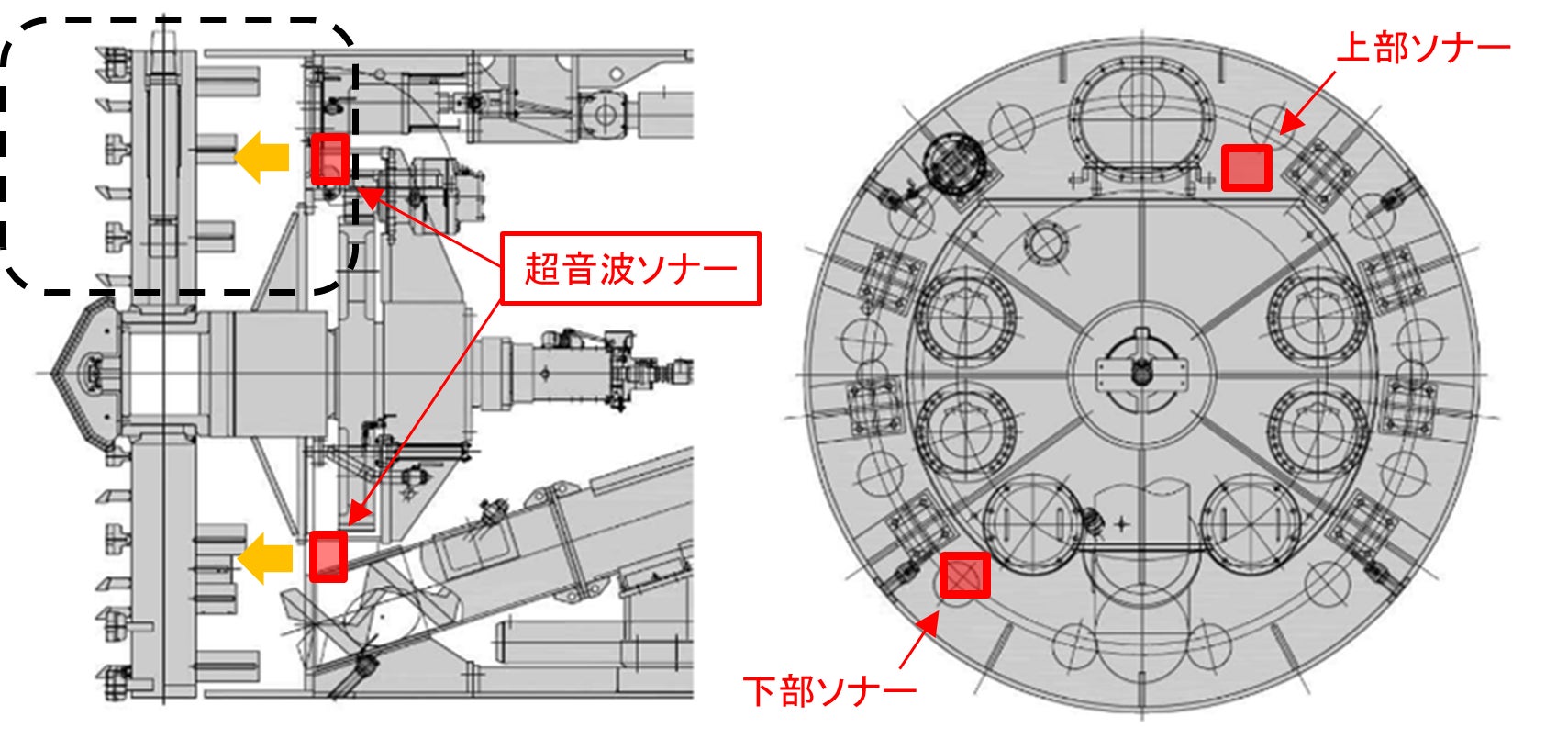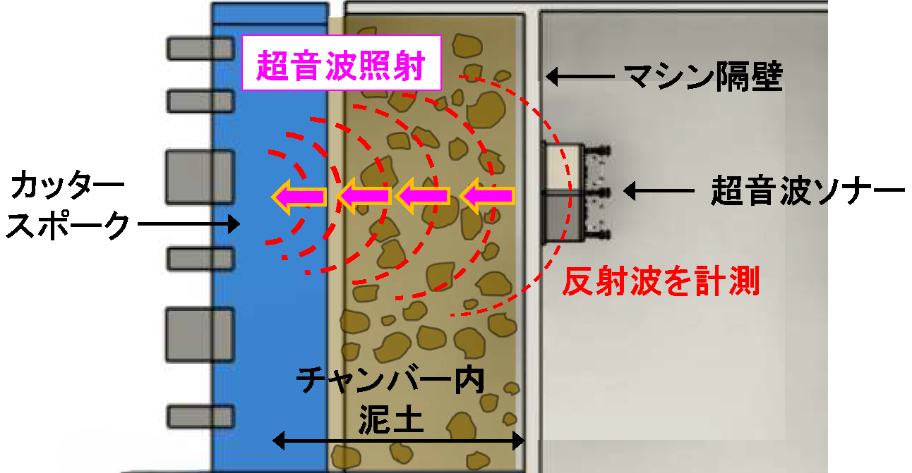 シールドトンネル工事において2020年に発生した地表面に影響を及ぼした事象を受け、国土交通省では「シールドトンネル工事の安全・安心な施工に関するガイドライン」を策定し、施工管理の高度化や安全性向上、切羽の安定性確認が強く求められるようになりました。しかし、チャンバー内の掘削土砂は隔壁により直接目視ができず、シールドマシン作動状況やスクリューコンベア排土状況から判断するなど、シールド技術者の経験に大きく依存していました。当社は2024年度、超音波ソナーを用いて塑性流動性を定量評価するシステムを開発し実用化しましたが(図-1,2,3,4、写真-1)、さらに有効な情報を得るため、今回の開発を行いました。