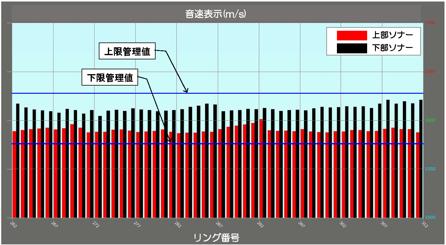 といった、土質特性と音速の相関が確認されました(図-6)。これらのデータを専用プログラムで自動解析することにより、掘進中の土質区分と添加材投入量による変化をリアルタイムに判定する機能を実現しました。