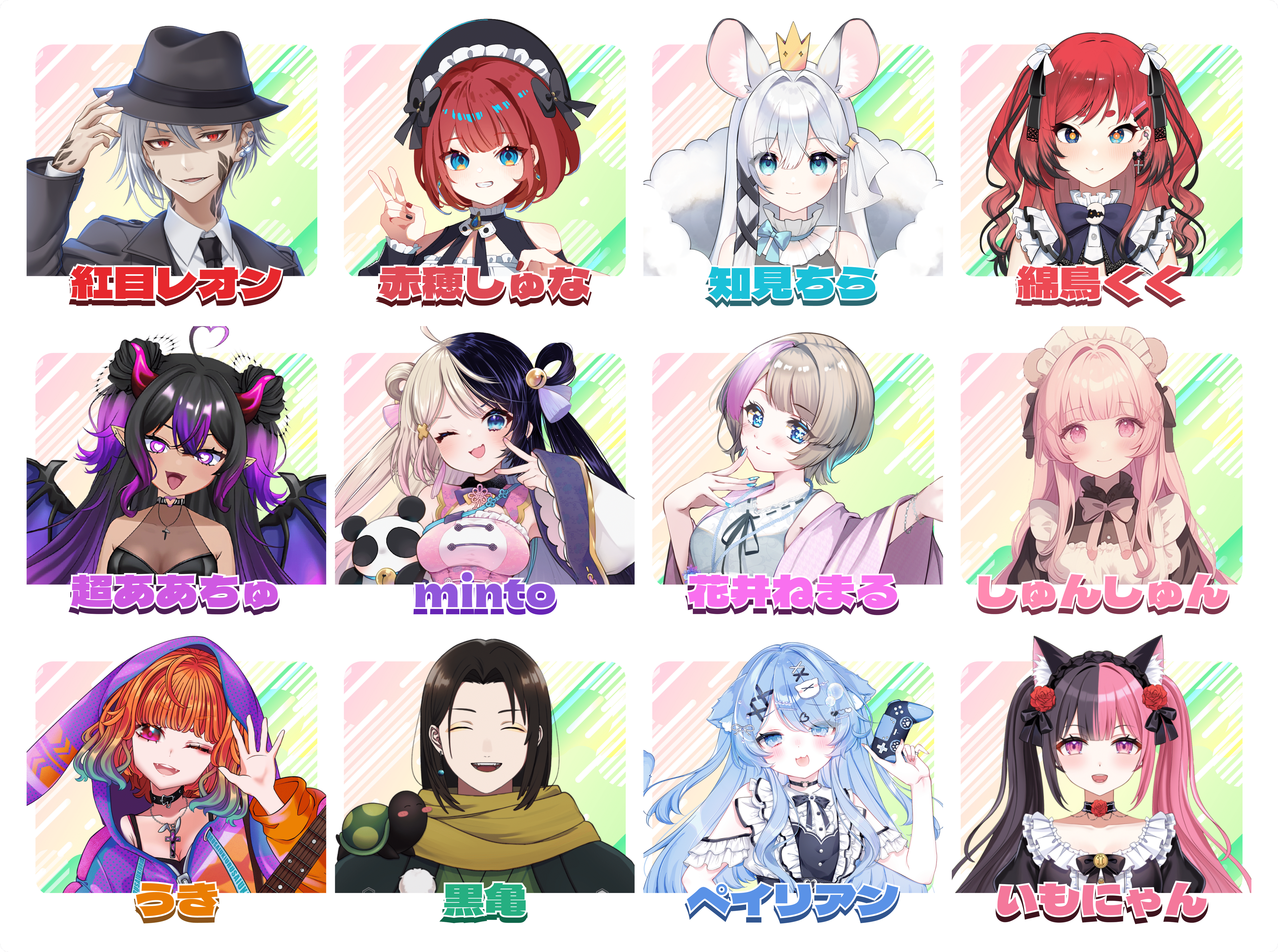 紅目レオン / 赤穂しゅな / 知見ちら / 綿鳥くく / 超ああちゅ / minto