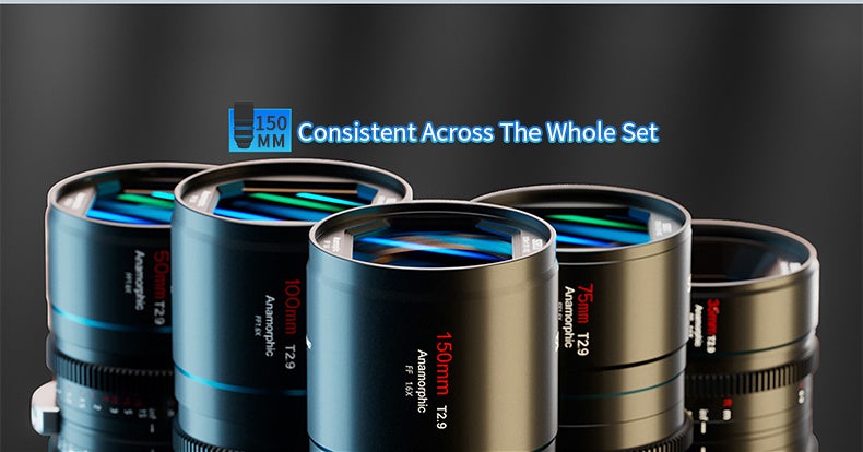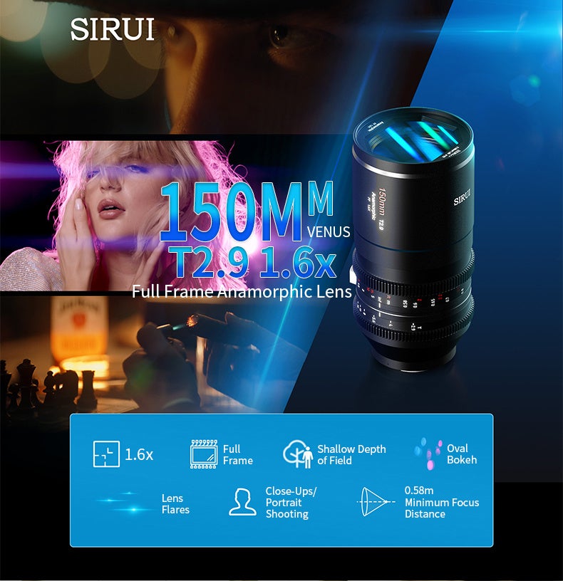 35mm、50mm、75mm、100mmのレンズに加えて、SIRUIは1.6倍のVenusフルフレームアナモルフィックラインアップをさらに拡充するため、新たに50mm T2.9のテレフォトレンズを導入します。