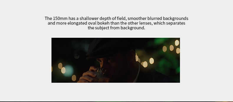 150mmのレンズは浅い被写界深度を持ち、他のレンズよりも滑らかでぼかしの背景とより伸びた楕円形のボケを提供し、被写体を背景から際立たせます。