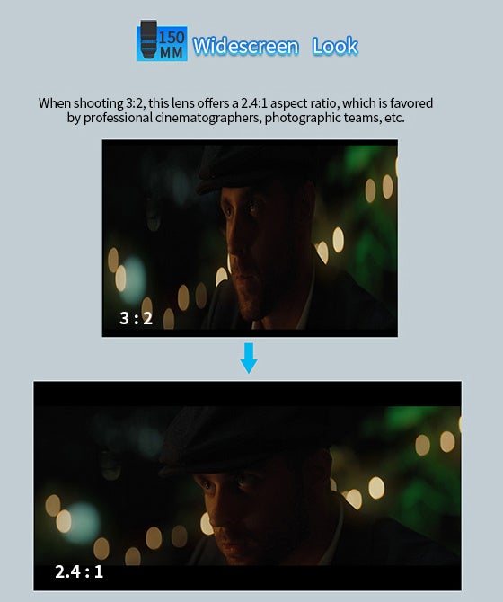 このレンズは、3:2の撮影時に2.4:1のアスペクト比を提供し、その特性からプロの映画撮影者や写真チームに高く評価されています。