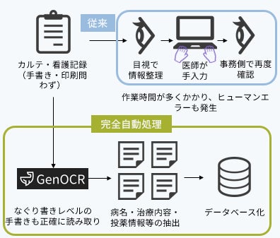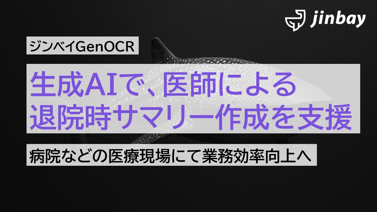 ジンベイ株式会社(本社:神奈川県横浜市、代表取締役:上田英介)が提供する生成AI-OCR「ジンベイGenOCR(ジェンオーシーアール)」が、医療現場での退院時サマリー作成支援に活用されています。カルテや看護記録などを自動で読み取り、必要項目を構造化・要約。医師や看護師の記録業務の負担を軽減し、診療の質向上に貢献します。