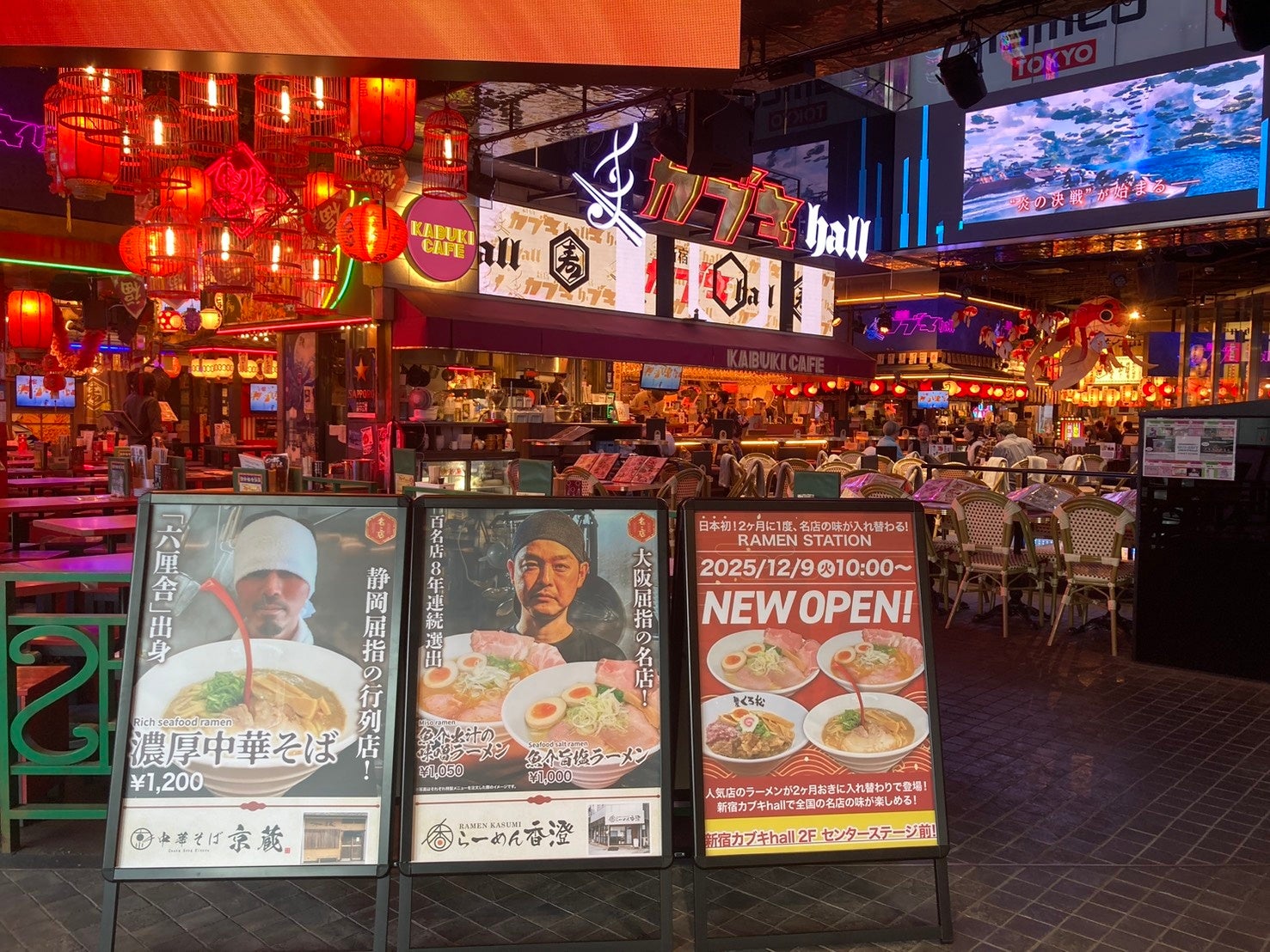 新宿カブキhall×ラーメンステーション (〒160-0021 東京都新宿区歌舞伎町1-29-1 東急歌舞伎町タワー2F) ・公式サイト ・公式Instagram |