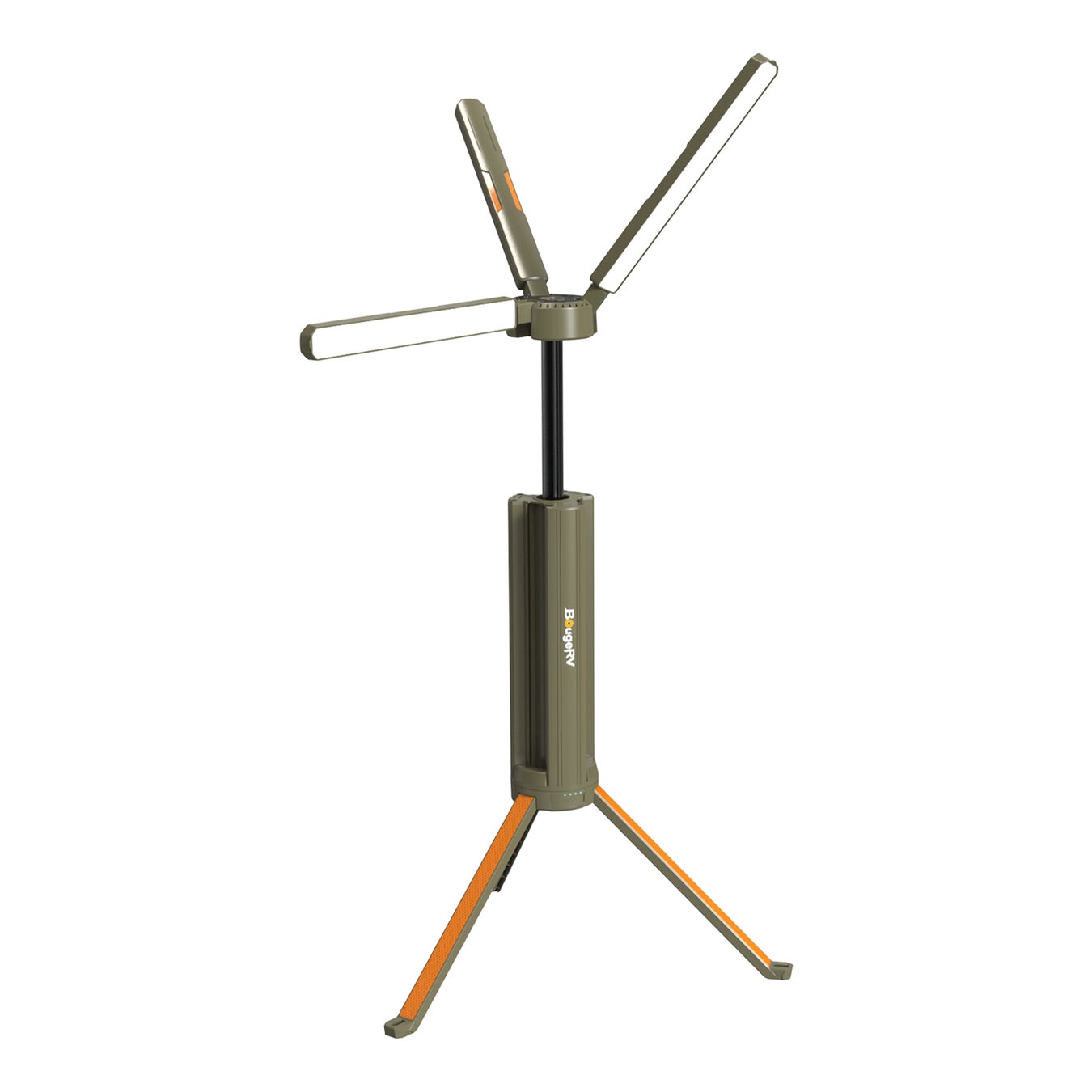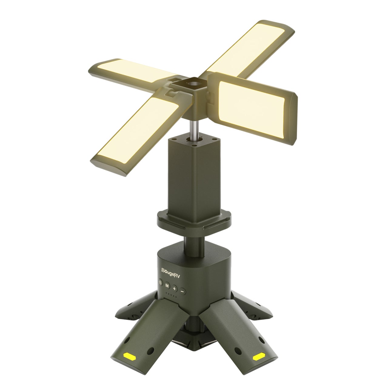 全点灯時に最大3000ルーメンの明るさを提供し、最大50平方メートルの範囲を照らせます。折りたたみ可能で、高さは27cmから164cmまで自由に調整できます。また、吊り下げても使用でき、様々なシーンに対応できます。15600mAhの大容量バッテリーを内蔵し、最大60時間の連続照明が可能です。