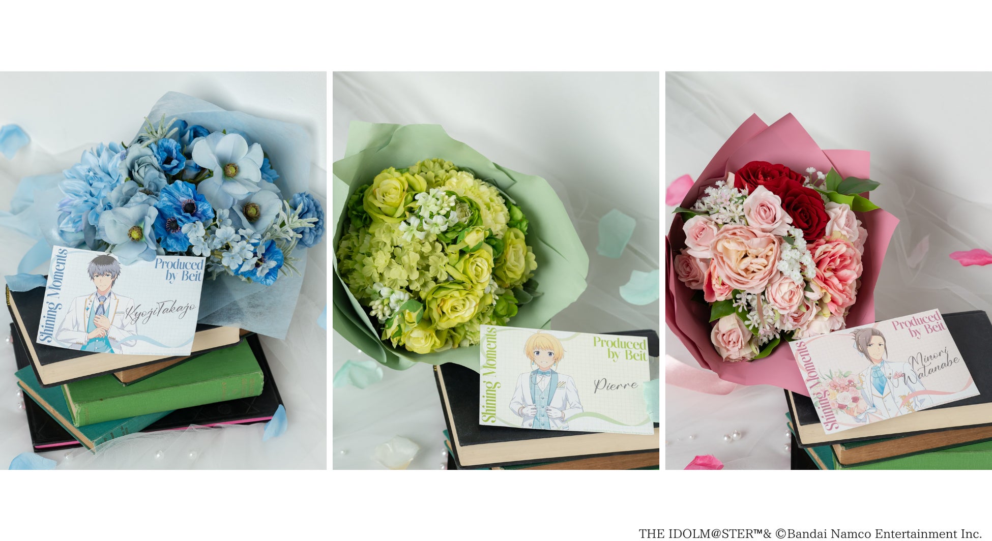 購入者限定にて、アイドル別パーソナルカラーをイメージしたブーケの展示サンプルと写真撮影が可能です。