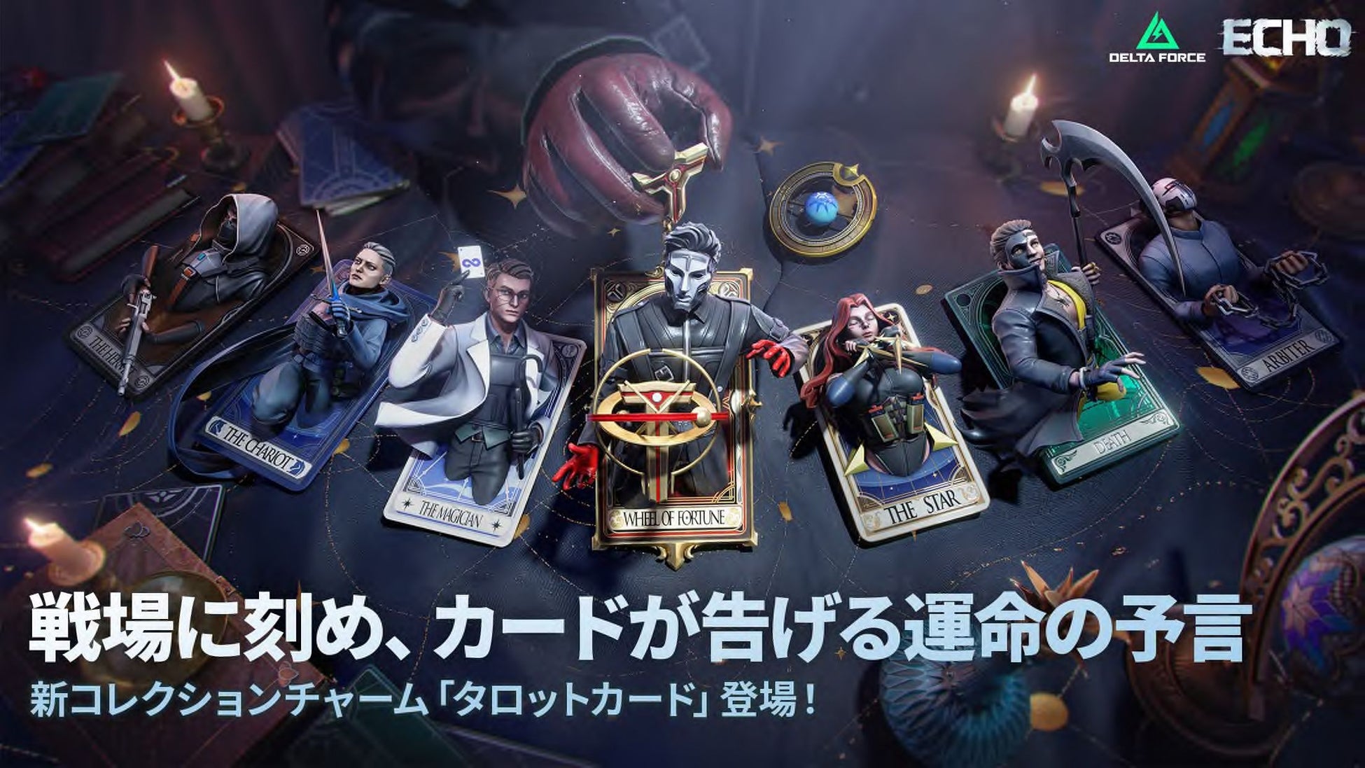 あわせて、コレクションチャームとして「タロットカード」も登場。戦場に「運命」のモチーフを取り入れたユニークなデザインとなっており、プレイヤーの個性をさりげなく表現できる要素として注目されています。今後はシークレット要素の存在も示唆されており、収集やカスタマイズの楽しみがさらに広がる内容となっています。