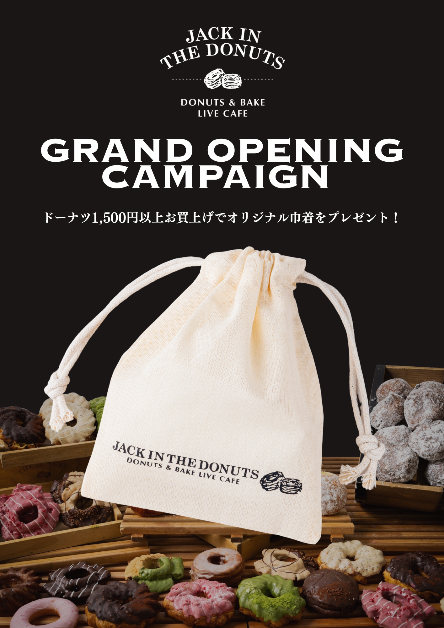 日本発祥のドーナツチェーン『JACK IN THE DONUTS』がアミュプラザくまもとに出店、1,500円(税込)以上お買上のお客様にオリジナル巾着をプレゼント!