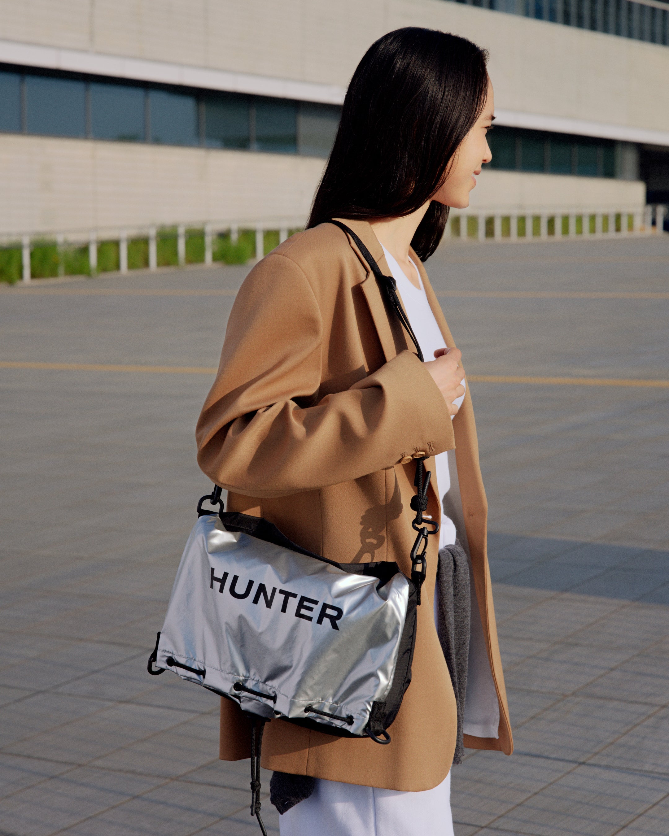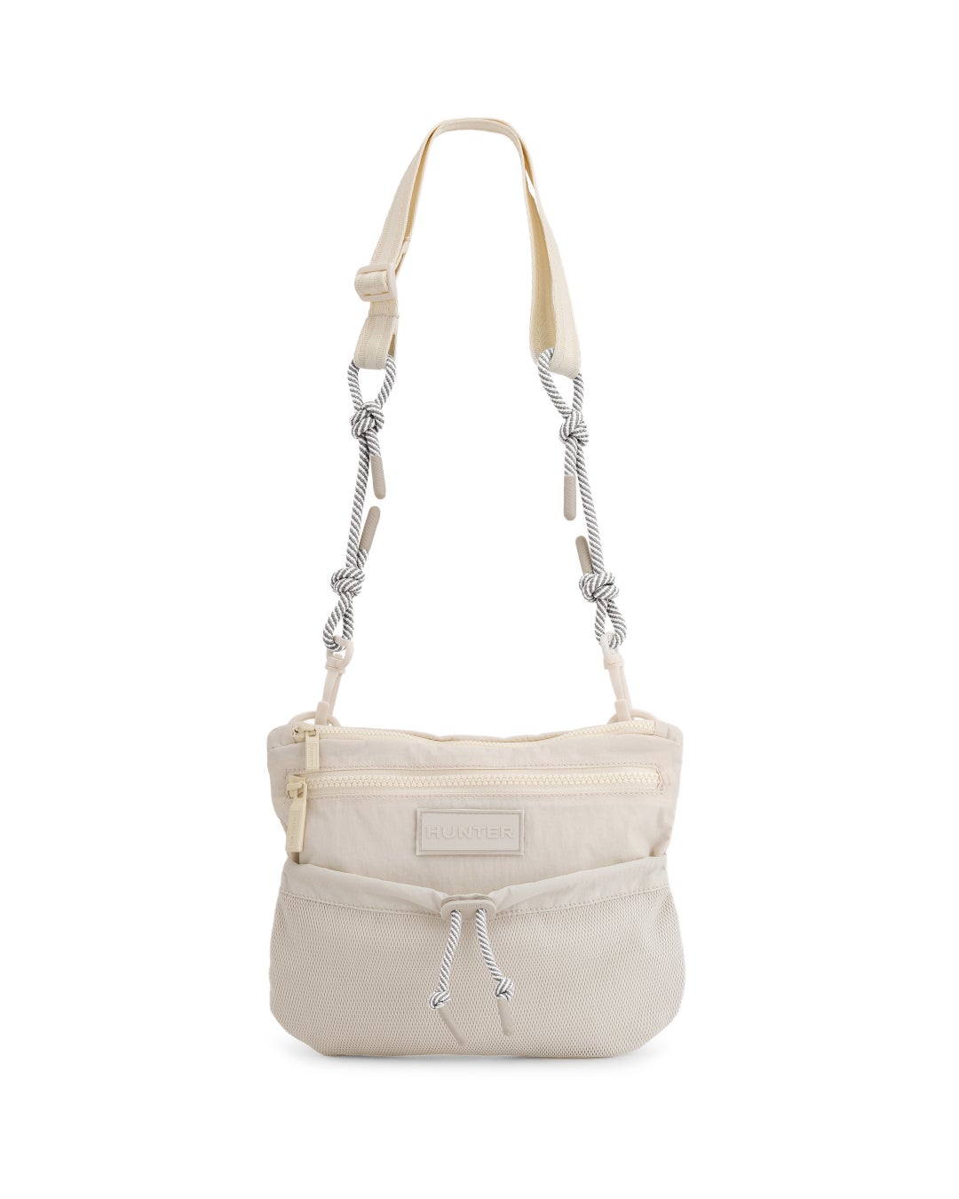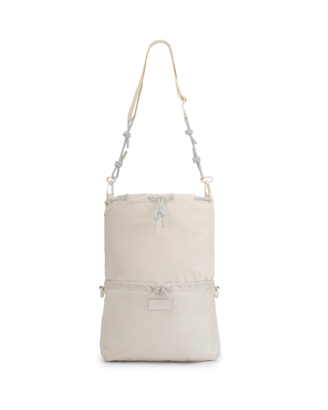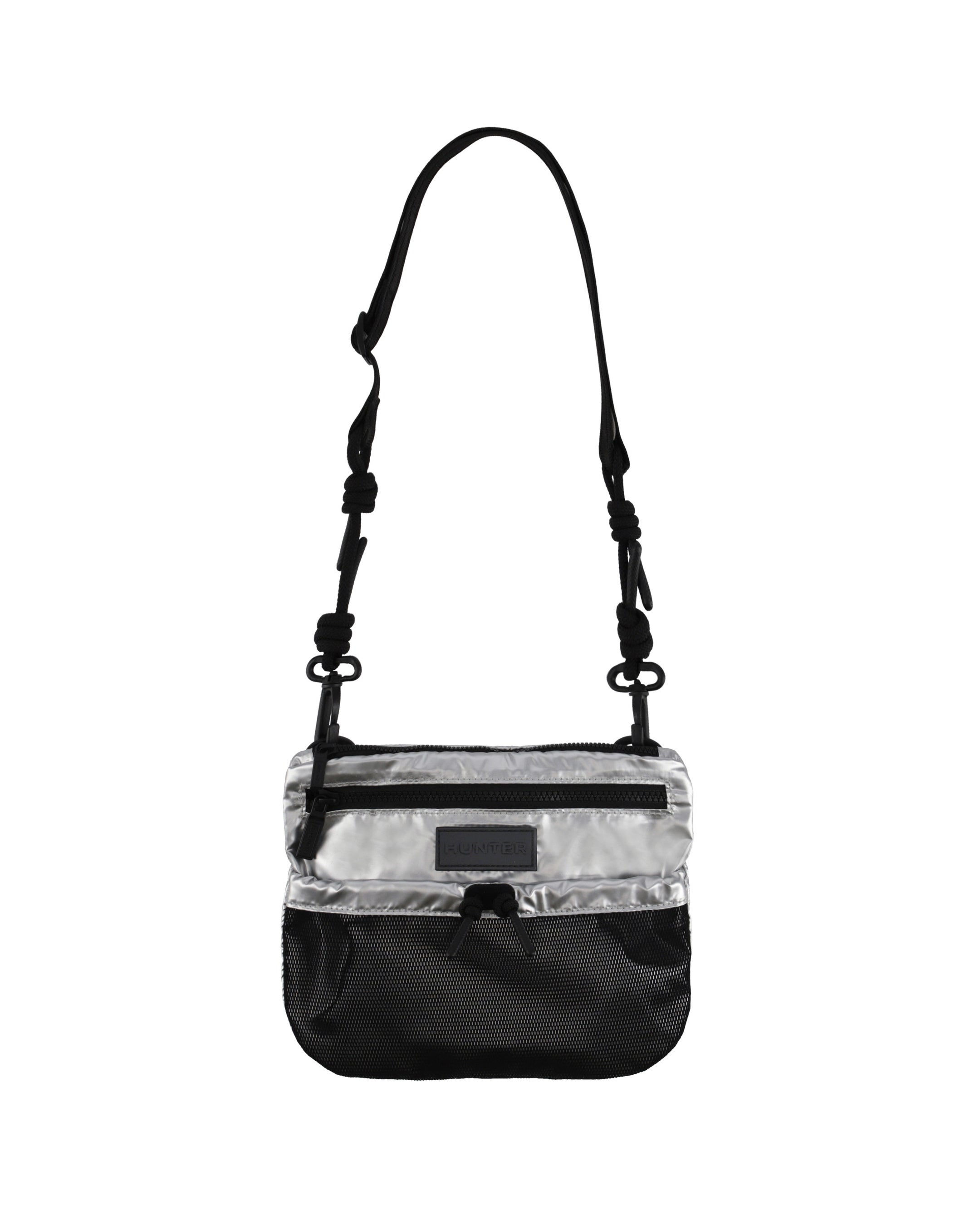 トラベルマルチファンクションサコッシュは、シーンに合わせて2パターンのサコッシュとトートバッグとして使用できます。本体を半分に折りたたみ、折り目横の留め具にストラップを付ければサコッシュへと変身します。気分に合わせて、①PVCロゴを表に出すスタイル、②プリントHUNTERロゴを表に出す2パターンのスタイルが楽しめます。メインコンパートメントには小物収納に便利な内ポケット付き。③本体を折らずに開口部横の留め具にストラップをつければトートバッグへと変身します。A4サイズも収納可能で出先で荷物が増えたときにも使い勝手が良く重宝するアイテムです。