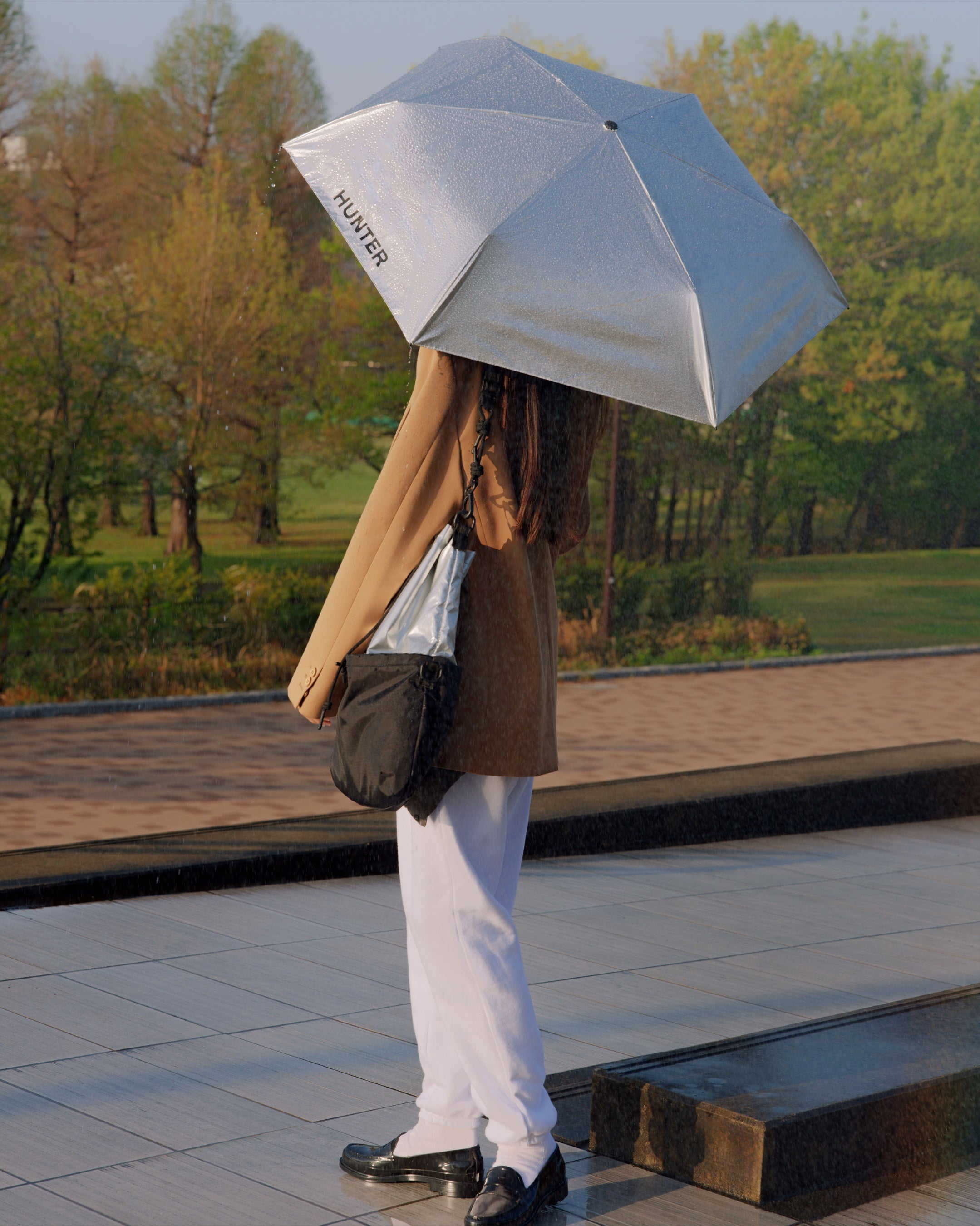 昨年ローンチされた、ブランド初の晴雨兼用傘「ALL WEATHER AUTO COMPACT UMBRELLA」より、新色が登場します。日傘の機能を携えながら、雨を防ぐこともできる日常使いに最適な折り畳み傘です。便利なワンタッチ開閉仕様により、快適な使い心地を実現。これからの季節の強い日差しや急な雨にも対応します。シルバー×ブラックのHUNTERロゴがアクセントとなり、モードからカジュアルまで幅広いスタイリングにマッチするアイテムです。