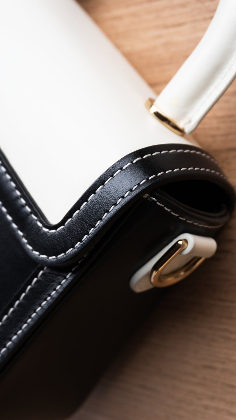 イタリアの皮革工芸の中心地であるヴェネト地方由来の、LWG(Leather Working Group)認証の滑らかなイタリアン・カーフスキンを用い、硬質な構造とコンパクトで堅牢なボディを備えています。汎用性を重視し、ショルダーストラップを付属。クロスボディとしても着用でき、気負いのないシックなお出かけに最適です。