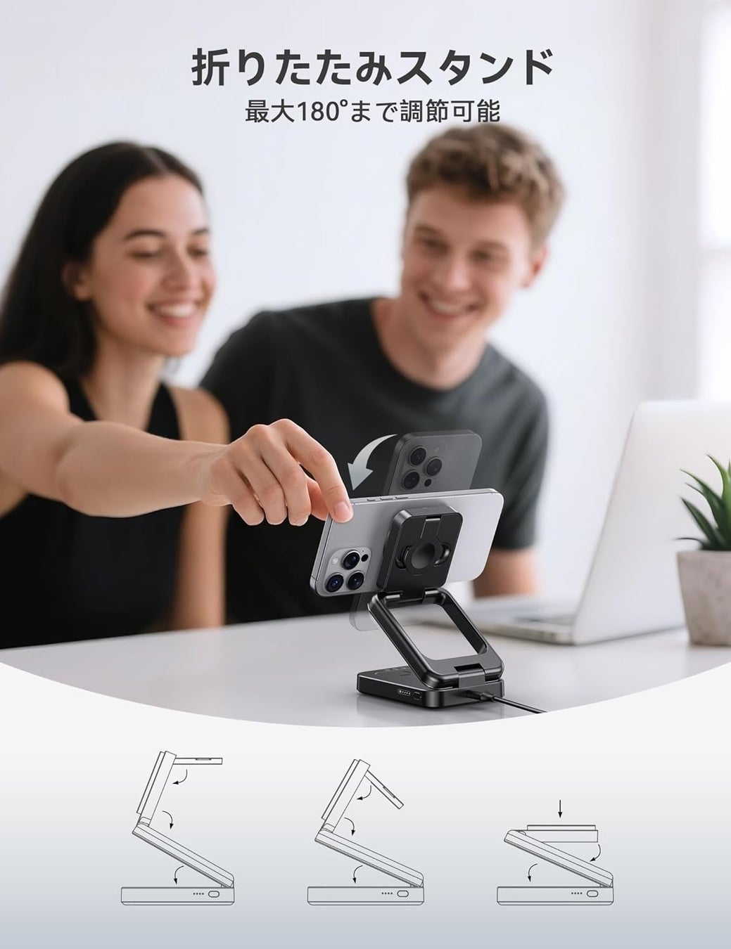 1. ワイヤレス充電スタンドとモバイルバッテリーが一体化
