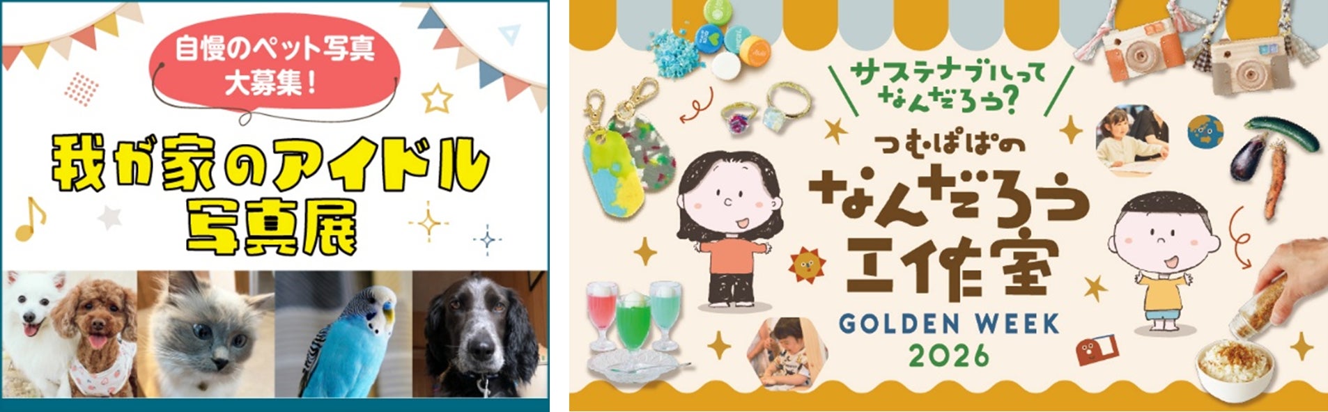 玉川髙島屋ショッピングセンター(運営:東神開発株式会社/所在地:東京都世田谷区/以下、玉川髙島屋S.C.)は、今年のゴールデンウィーク期間に合わせて、毎年恒例のペット写真展や、人気クリエイター“つむぱぱ”によるサステナブル企画など、ご家族でお楽しみいただけるイベントを多数開催します。