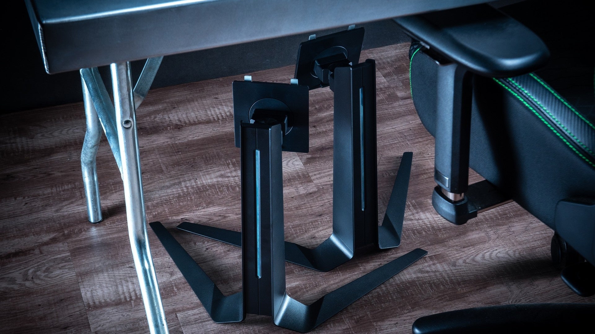 付属スタンドや不要なパーツによる設置や保管の手間などの“雑念”を解消。さらに、モニターアームを前提とした自由度の高いデスク環境の構築を可能にします。これにより、プレイヤーがひたすらゲームに集中できる快適な体験を追求しました。