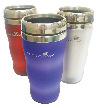 タヒチアンノニ カフェのロゴが入ったタンブラー。
