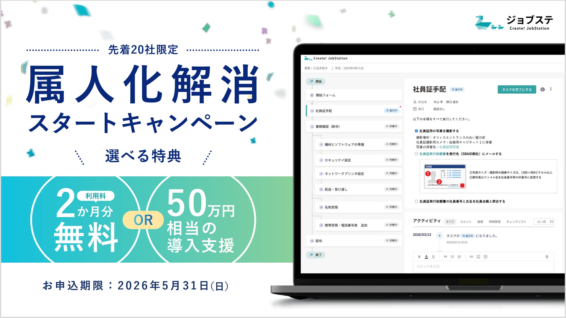属人化解消の第一歩を応援!UIを刷新した「ジョブステ(Create!JobStation)」がスタートキャンペーンを開始