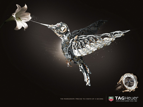 この美しきタイムピースのために、クリエイティブで革新的、かつ精度という明快なメッセージを添えた、広告ビジュアルが必要でした。ウォッチメイキングというアートへのトリビュートでもあるビジュアル、―その結果として、自然界からのインスピレーションを重んじたのです。自然を超えるより確かな実存はこの世に存在しません。タグ・ホイヤーは、時計の小さな部品をもちいて、自然界のもたらす究極の精度を具現化しました。タグ・ホイヤーが、CLM BBDO(フランスの大手広告代理店)とともに手がけたこの広告ビジュアルは、自然界における一瞬の時と究極の精度をアーティスティックに表現したクリエイティブが認められ、“ウォッチ オブ ザ イヤー アワード”を受賞したのです。