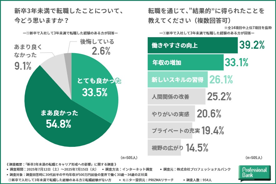 では実際に、新卒で入社後3年未満に転職を経験した人たちは、どのような理由で職場を離れ、どのような変化を得ているのでしょうか。