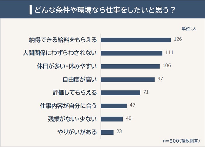 ・仕事をしたいと思える条件は「納得できる給料をもらえる」