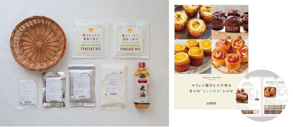 今回、本商品の新発売を記念し、マフィン型を使って作ったお菓子やパン等をSNSに投稿いただくと豪華プレゼントがあたるSNSキャンペーンを開催いたします。また、キャンぺーン期間中に本商品をご購入いただいた方には、Mizukiさん、あいりおーさんのとっておきのレシピが掲載されたオリジナルレシピブックをプレゼント。マフィン型がもっと好きになるアイデアがいっぱいです。さらに、2023年9月1日 (金)にはInstagram・Youtubeにてコッタスタッフによるライブ配信を開催しますので、ぜひご覧ください。