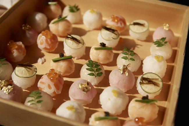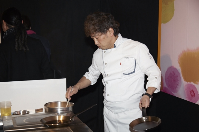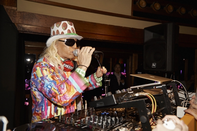 パーティーのオープニングでは、お庭のイルミネーションの点灯とともに、ダンサーによるパフォーマンスが行われ、さらにスポットライトとともに武田真治さんが登場。幻想的な雰囲気の中、サックスを演奏する武田さんの姿に、会場にいた全員が目を奪われていました。また、国内外で高い評価を受けるパティシエ 小山 進さんも登場し、フランスのバターにゆずを使用したシャンパーニュに合うクレープをサーブ。クレープとシャンパーニュの新しいコラボレーションを披露しました。そしてパーティーは、DJ KOOさんによるDJパフォーマンスで盛り上がりは頂点に。京都の一足早い春を祝う盛大なパーティとなりました。