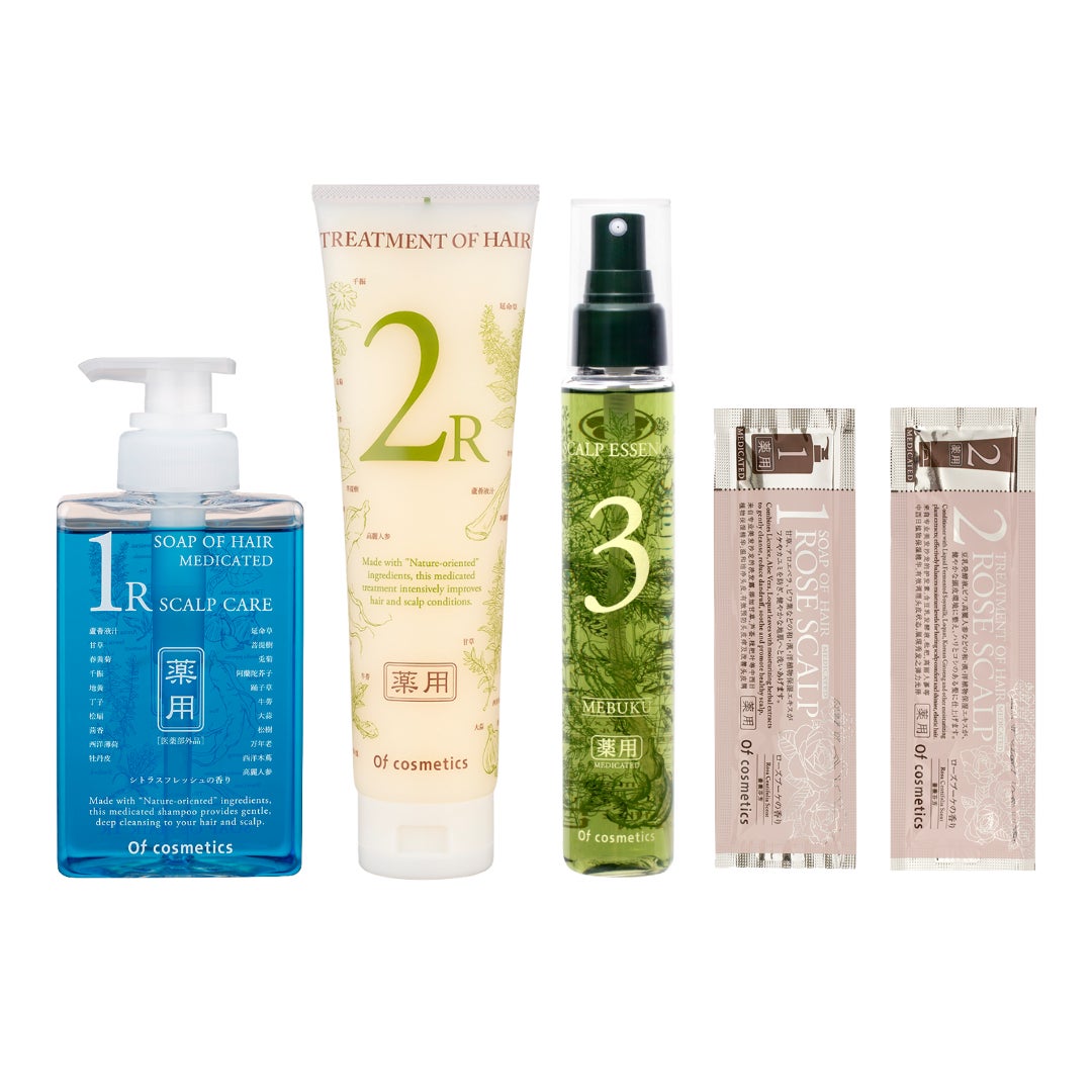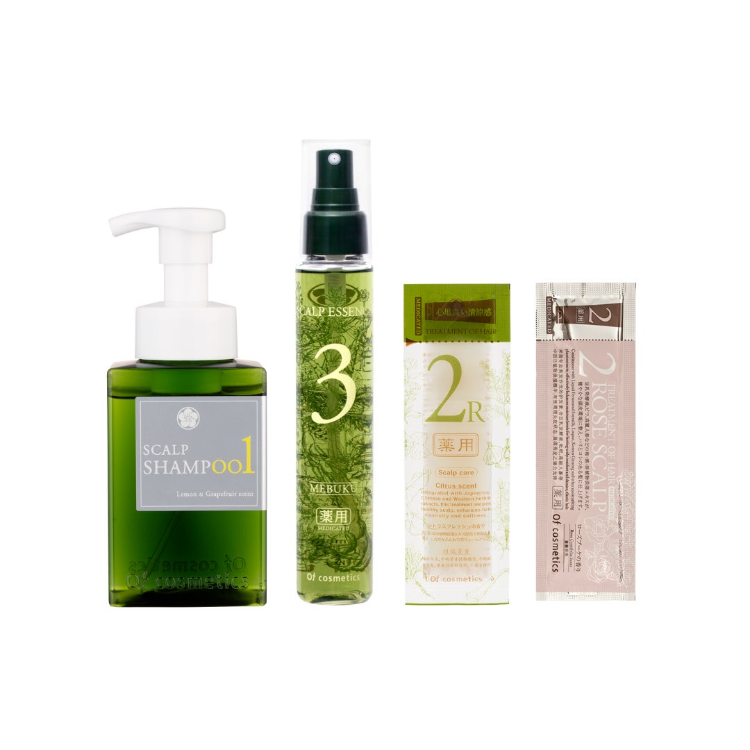 オブ・コスメティックスのスキャルプケアシリーズは、頭皮ケアに特化したシャンプー、トリートメント、スキャルプエッセンスのラインナップ。このシリーズは、フケやかゆみ、細毛や抜け毛に悩む方々に向けて開発されました。アロエベラ液汁や高麗ニンジンなど、20種類以上の和漢洋植物エキスを採用し、地肌と髪のケアに最適です。地肌に潤いと柔軟性を与えるだけでなく、仕上がりの美しさにもこだわっています。