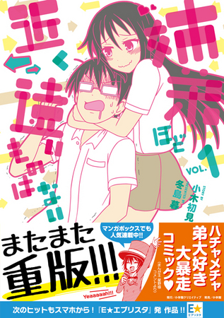 上記作品と同様にオンラインコミック誌「少年エッジスタ」にて連載中の「姉弟より近くて遠いものはない」1巻も重版が決定いたしました。こちらは再々重版となります。