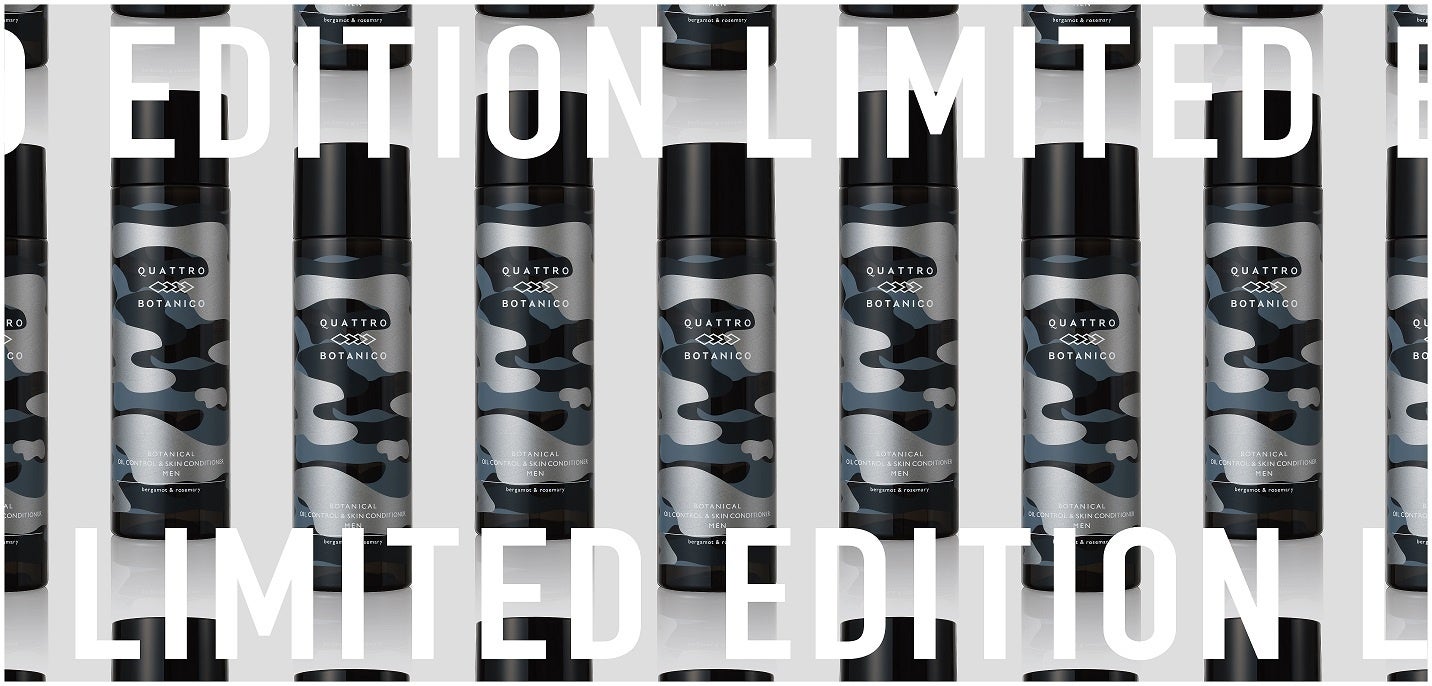 クワトロボタニコのテカリ・べたつき肌を整えるオールインワン化粧水から、カモフラ柄の限定ボトルを数量限定発売「ボタニカル オイルコントロール & スキンコンディショナー リミテッド デザイン」