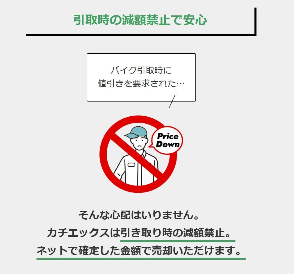 従来の査定では、実車を確認した際に金額が下がってしまうこともありましたが、カチエックスでは事前にキズや車両の状態がわかるお写真をお送りいただくことで、こうした減額を防いでおります。