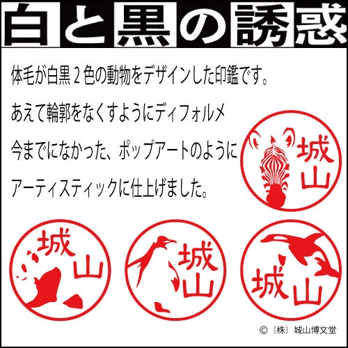 株式会社 城山博文堂では、白黒2色の毛色の動物デザインが入ったハンコ「白と黒の誘惑」を1月15日に発売しました。