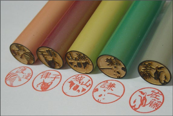 ・従来の名前だけのハンコや単純なデザイン付き(名前とデザインが並んだものや、キャラクター商品などのファンシー商品的なもの)とは一線を画すもの