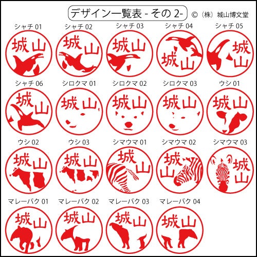 名前と共に、ポップアートのような動物のデザインが入ったハンコです。