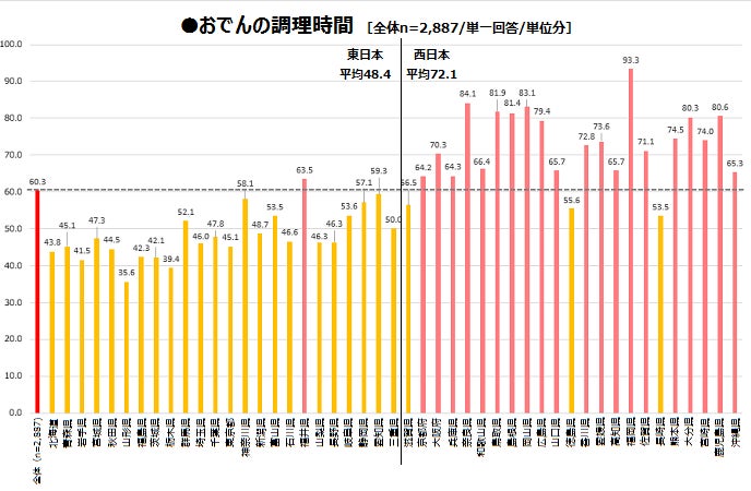 - おでんの調理時間 西日本は全国平均より長い傾向