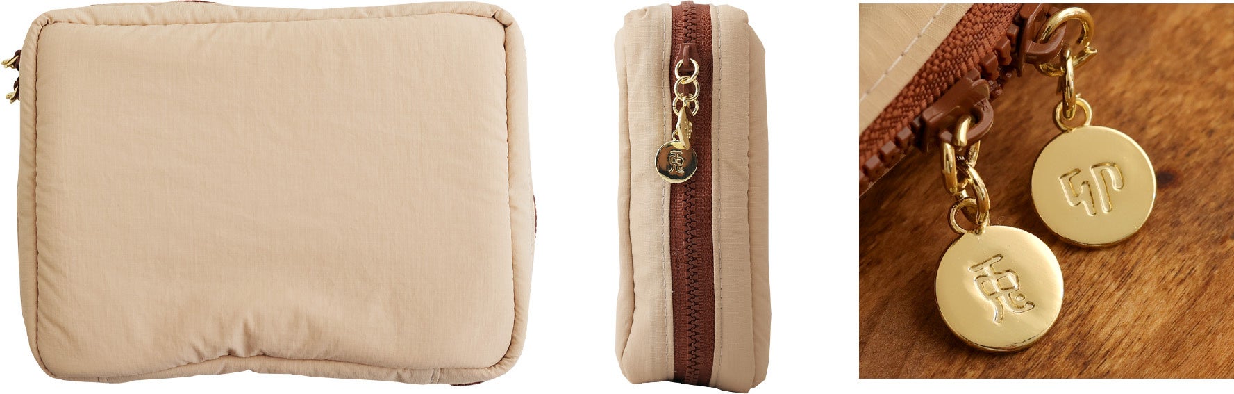 引き手のチャームにはそれぞれ「兎」と「卯」の刻印が。内側にはポケットが1つ付いています。