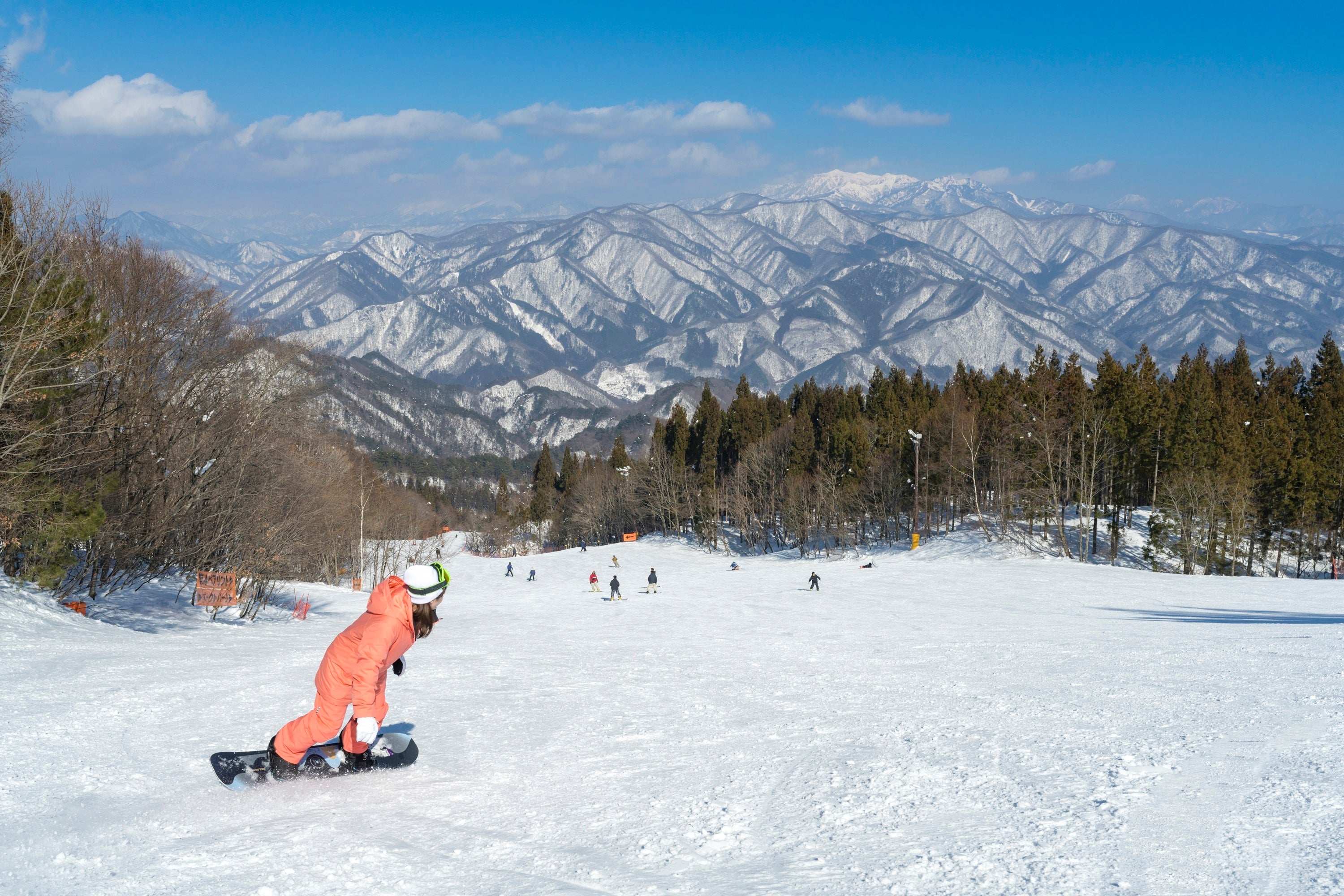 晴れた日には、ゲレンデ上部から武尊山や日光白根山などの山並みが望めます。雪面だけでなく景色も楽しめる、ちょっと得した気分になれるロケーションです。