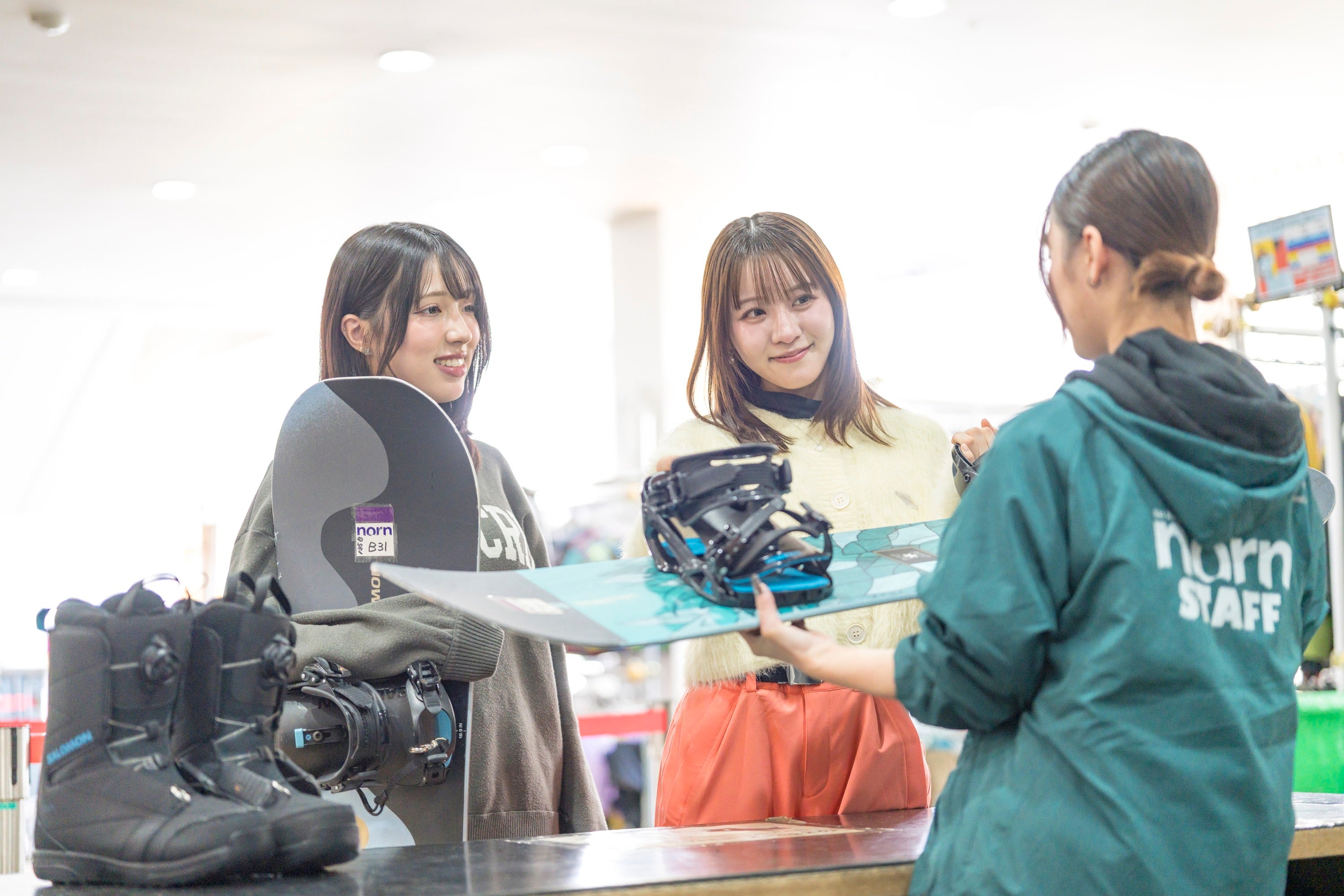 スキー・スノーボード・ウェアなど、手ぶらでも楽しめるレンタルコーナーを準備しています。なおグローブやサングラス、ゴーグル、帽子などはスキー場内のショップにて種類豊富に販売しております。