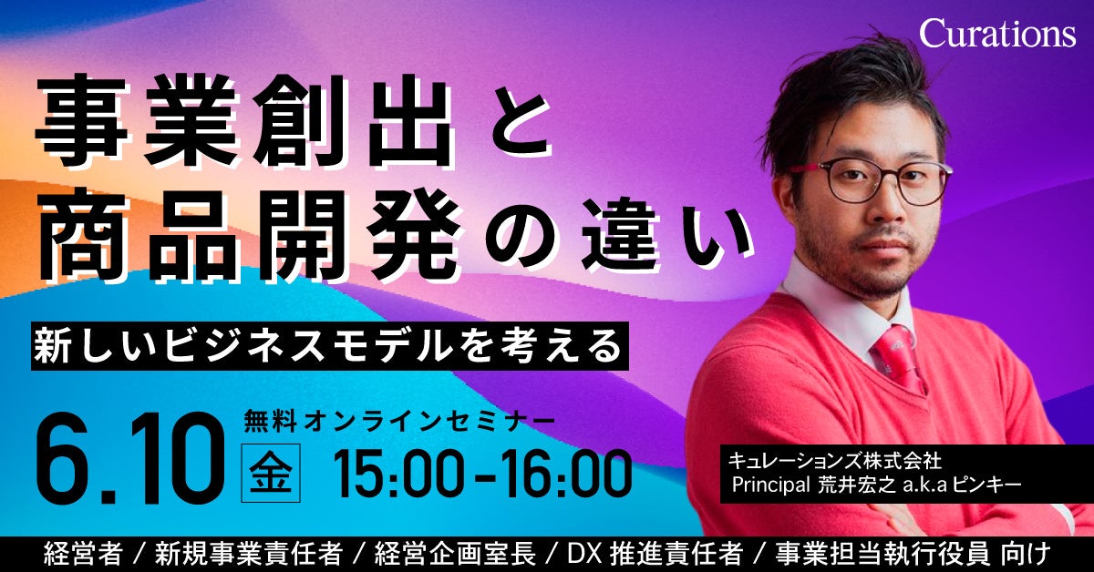 顧客企業のビジネス変革を成功に導くキュレーションズ株式会社(本社:東京都渋谷区、代表取締役社長:根本隆之、以下当社)は、『新しいビジネスモデルを考える 〜事業創出と商品開発の違い〜』を2022年6月10日(金)に開催いたします。