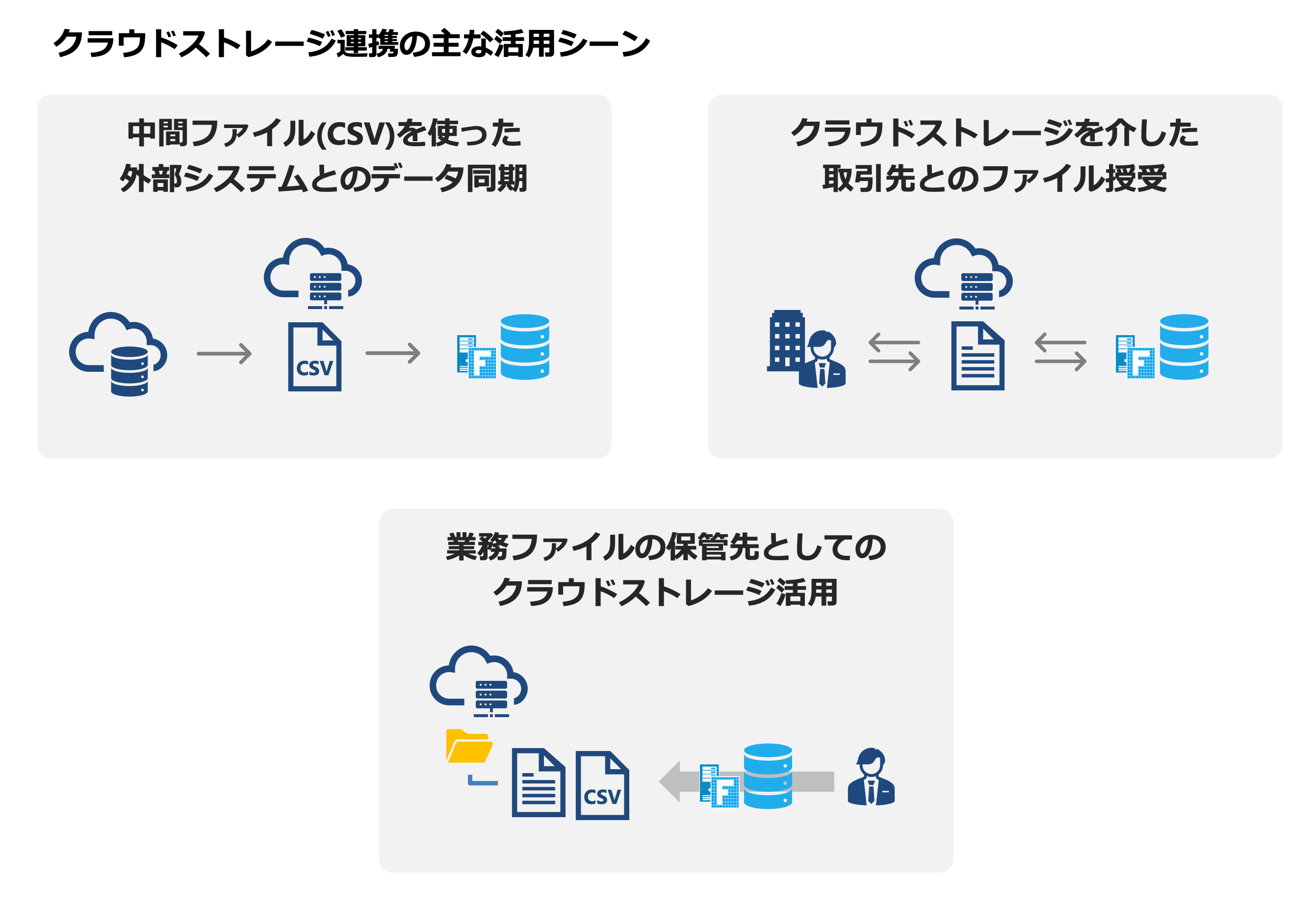 本機能の追加により、データベース連携ができない基幹システムやクラウドサービスのデータをForguncyに取り込んで幅広く活用することができます。また、定期実行処理によってクラウドストレージを介したデータ連携の自動化も可能になります。