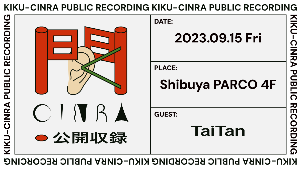渋谷PARCOでPodcast『聞くCINRA』の公開収録を9月15日(金)に実施。ラッパー・TaiTanが出演