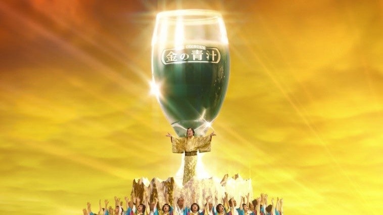 CGで無数に増殖した腰元ダンサーズも迫力満点。売上No.1※ブランドにふさわしく、金色に輝く富士山を囲んで踊りまくる映像は圧巻です。どこまでが実写でどこからがCGか、あなたは見分けることができるでしょうか?