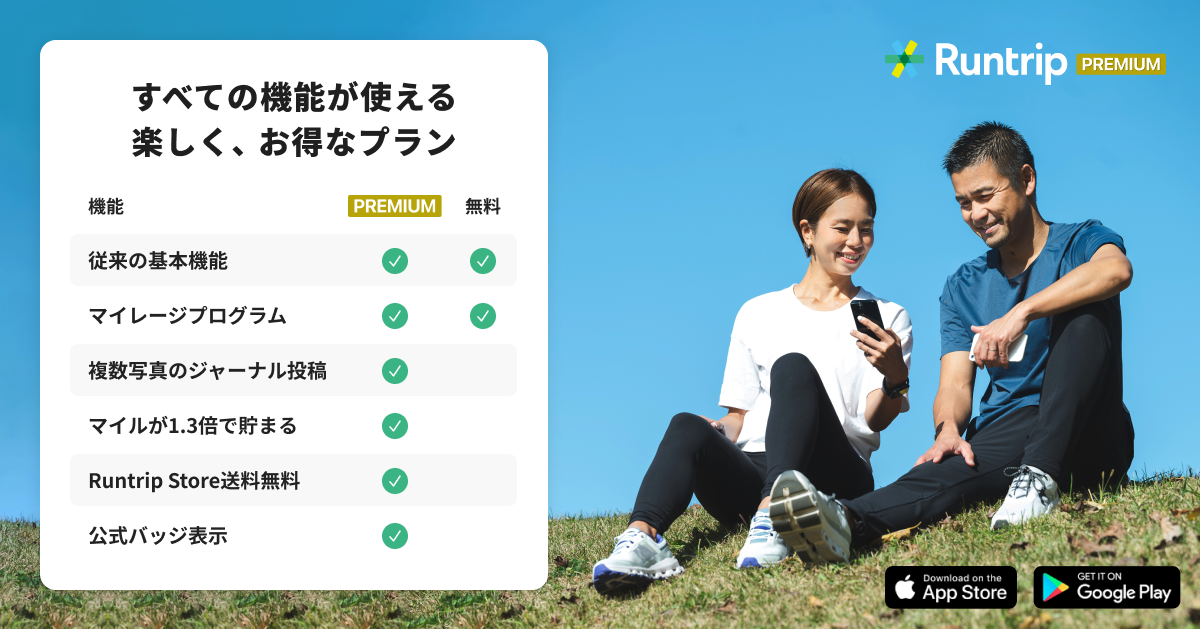 ※Runtrip PREMIUMをご利用になるには最新版のアプリ(v5.0.0)が必要です。既にダウンロード済みの方は最新版にアップデートをしてからご利用ください。