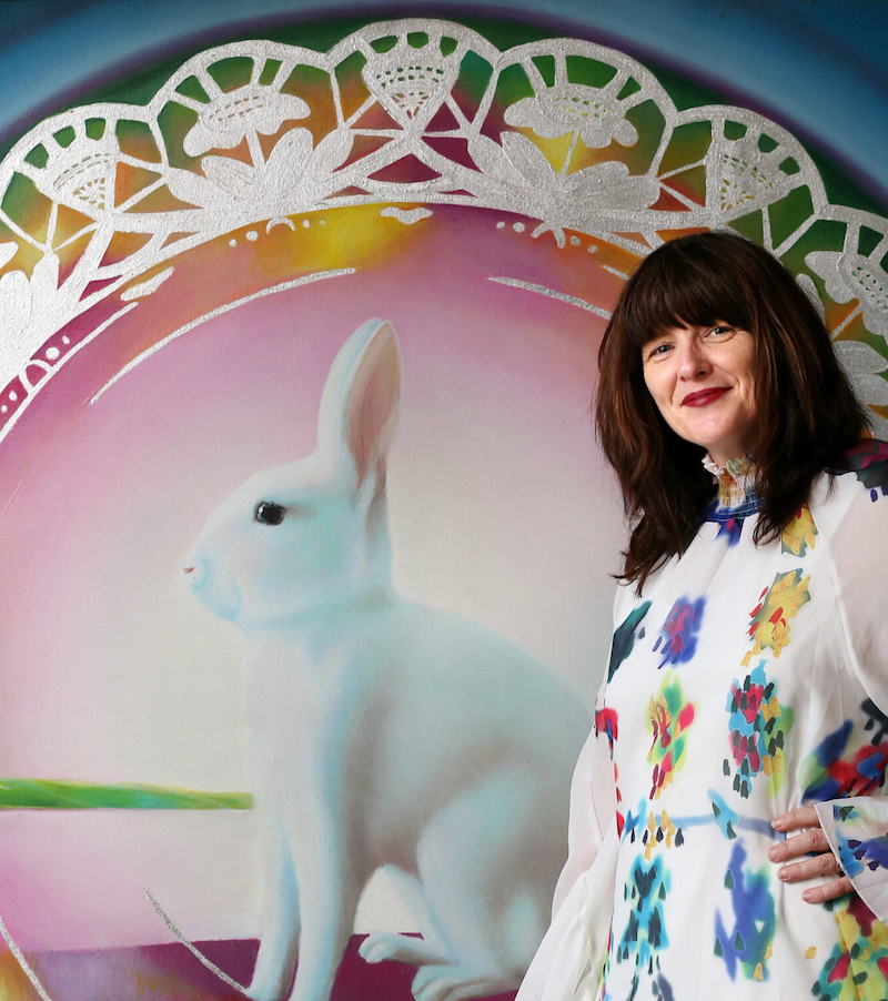 1788年、白人入植者によってオーストラリアに持ち込まれて以来、ウサギはオーストラリアの繊細な生態系に大きな破壊をもたらしています。Parerは私たちが子供の頃に見たおとぎ話の牧歌的でかわいらしいウサギと、深刻な環境破壊を引きおこすウサギの相反するイメージを表現しています。作品「Intrude」はかわいらしいイメージと強い視覚的ユーモアを意図的に融合させ観客を作品の中に誘い込み、作品の根底にあるより深刻な環境メッセージを見せつけているのです。その大きさは、「部屋の中の象」、つまり、私たちが自然界に与える影響のように、大きくて目につきやすいにもかかわらず、無視され続けている問題を表しています。