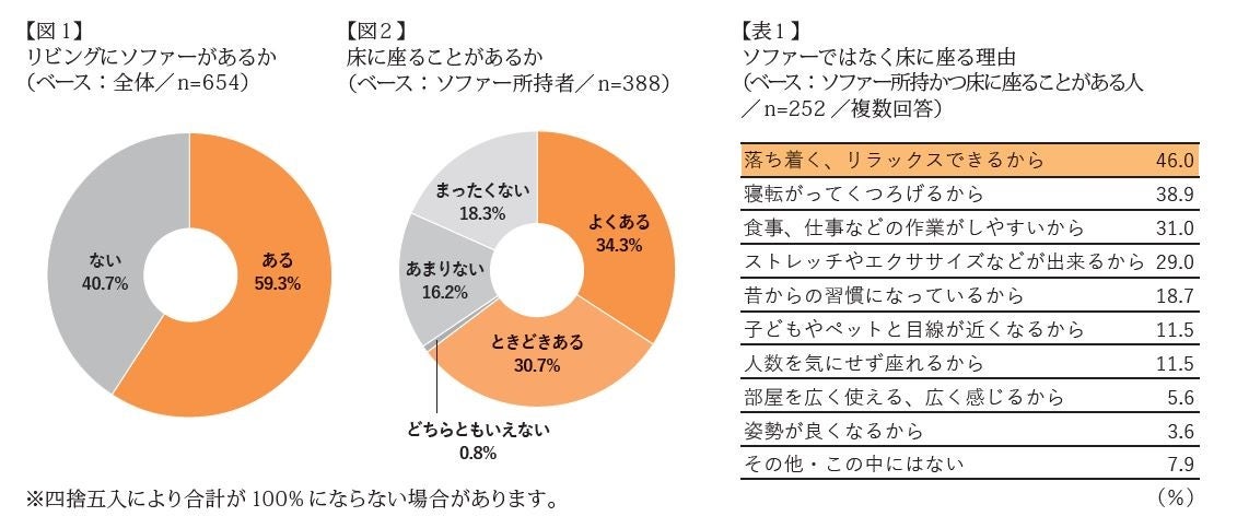 ※株式会社中川政七商店による調査では、約65% の人が「ソファーがあっても床に座る」と回答。(詳細は、別紙参照)