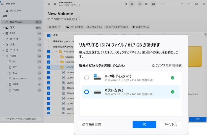 - 使い方は簡単!スキャンして、復元したいファイルを選択するだけ
