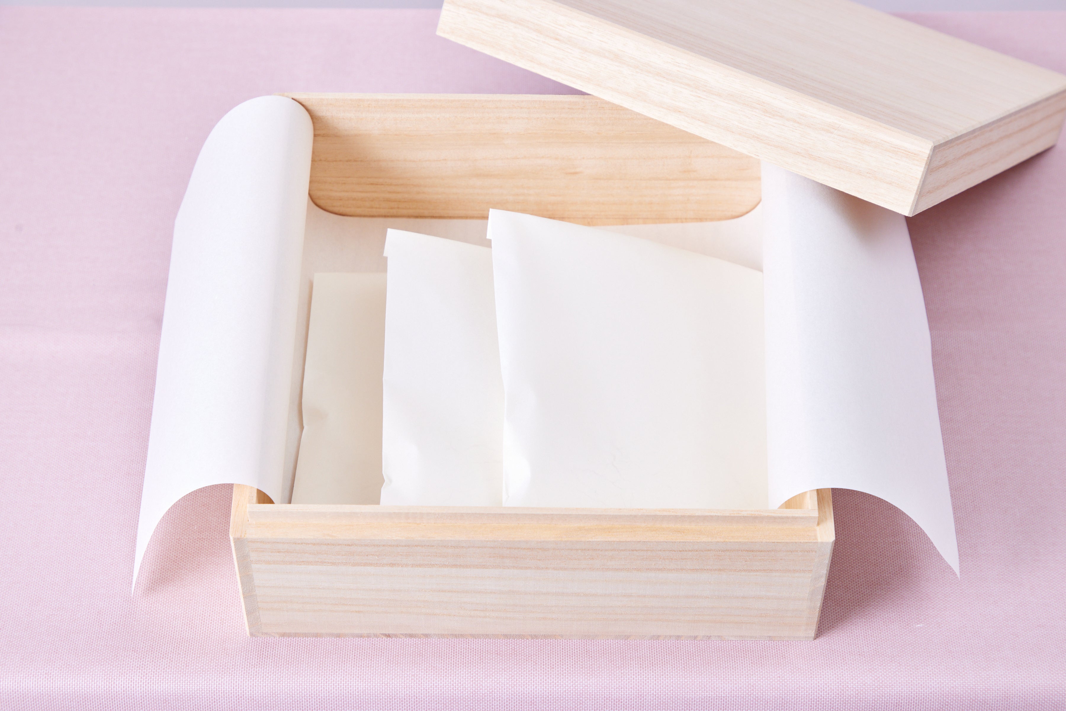 粉骨の様子と、粉骨したご遺骨を水溶性の袋に収めた様子